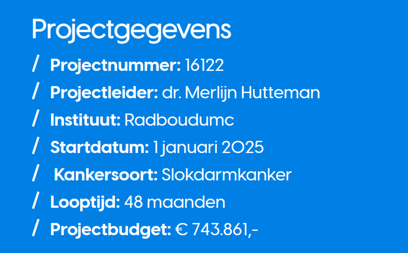 Door het beter onderscheid maken tussen kwaadaardige cellen op de plek van de tumor en lymfklieren wil ik de behandeling van patiënten beter persoonsgericht maken. Patiënten met een volledige respons op de voorbehandeling en geen tumorrest, hebben geen ingrijpende operatie nodig. Als we deze mensen betrouwbaar kunnen identificeren, kunnen we mensen een onnodige operatie besparen. Als we mensen bij wie er geen complete respons is ook goed kunnen identificeren, kunnen we ervoor zorgen dat bij hen de noodzakelijke operatie zonder vertraging en met verbeterde zichtbaarheid van de tumor kan worden uitgevoerd.
